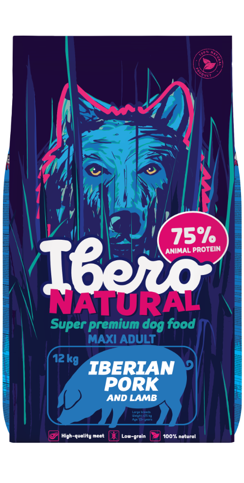 Dehydrated meat from Iberian semi-wild pig with lamb 36%, rice 30%, peas 10%, dietary pea fiber, poultry fat, carob flour, dried beet cuttings, olive extract, yeast and yeast extracts - Saccharomyces cerevisiae (Mananooligosaccharides - MOS and β -glucans), vitamins and minerals,