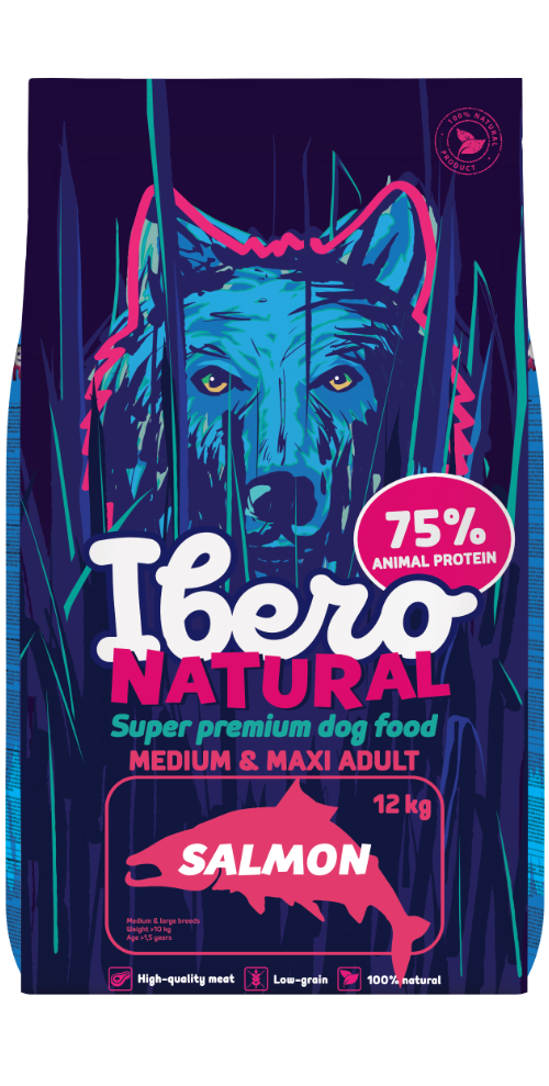 Dehydrated meat and fish 40% (salmon 15%), rice 26% (brown rice 15%), chicken fat (source of Omega-6 fatty acids), peas, carob pods, beet pulp, vitamins and minerals, insoluble dietary fiber from peas, yeast and yeast extract - Saccharomyces cerevisiae (source of mannanoligosaccharides - MOS and ß-glucans), hydrolyzed salmon protein,